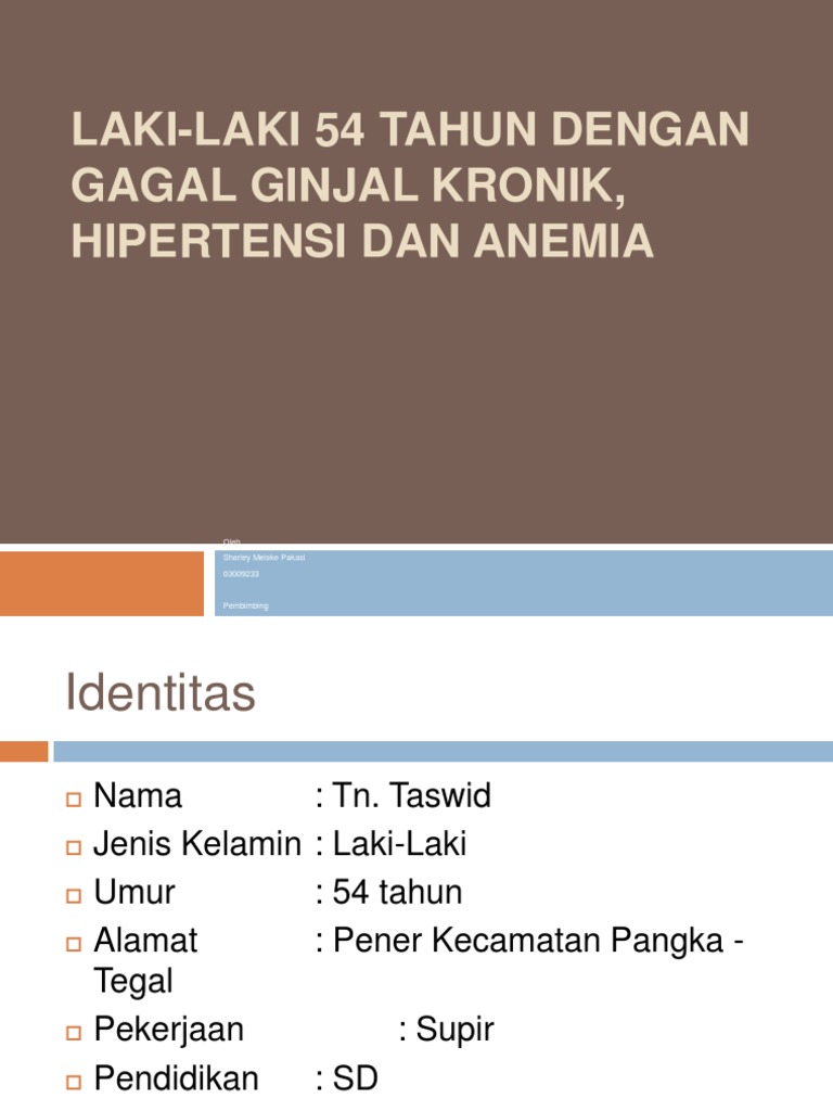 Gagal Ginjal Ppt from imgv2-1-f.scribdassets.com Penyakit ginjal polikistik adalah kelainan bawaan di mana kelompok kista berkembang di ginjal. Penyakit ginjal kronik (pgk) merupakan suatu proses patofisiologi dengan etiologi beragam, mengakibatkan penurunan fungsi ginjal yang progresif dan pada umumnya berakhir dengan gagal ginjal. Jurnal penyakit gagal ginjal kronik. Gambaran pola hidup pasien gagal ginjal kronik selama menjalani terapi. 12,5% atau 18 juta orang dewasa yang terkena penyakit ginjal file format: Beberapa kondisi kesehatan yang dapat menyebabkan penyakit ginjal kronik adalah: Pengelolaan penyakit ginjal kronik lebih mengutamakan diagnosis dan pengobatan terhadap penyakit ginjal spesilik yang merupakan penyebab penyakit ginjal kronik serta dialisis. Penyakit ginjal kronik (pgk) dapat menyebabkan perdarahan saluran cerna (psc).
